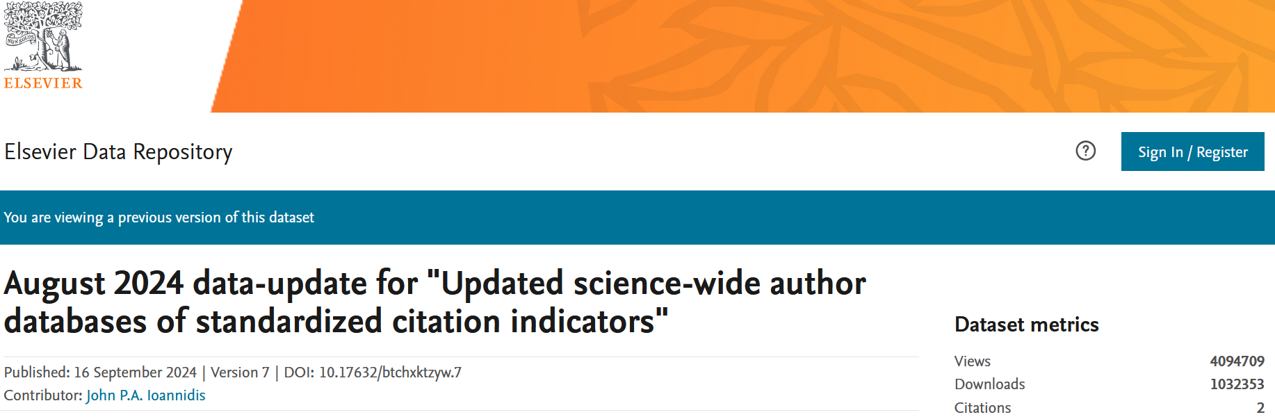 9月19日,斯坦福大学(Stanford University)和国际权威学术出版社爱思唯尔(Elsevier)共同发布2025年全球前2%顶尖科学家榜单(World's Top 2% Scientists)。