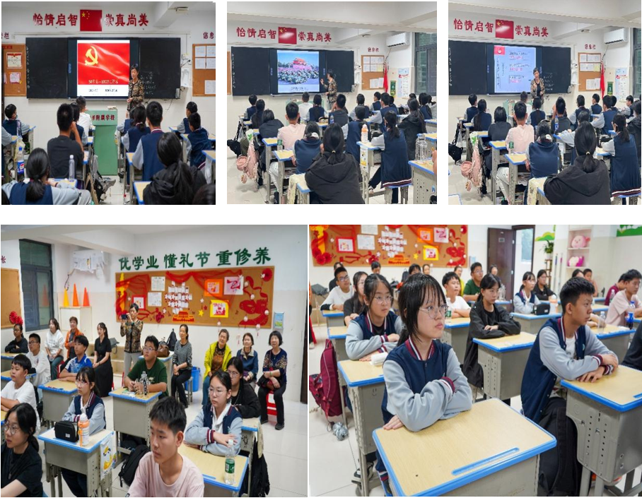 退休第五党支部的朱勤文老师以“我和中国共产党”为题开展教育分享。她从国家发展历程切入,通过图文并茂的PPT和“九三阅兵”等鲜活案例,生动讲述了国家在党领导下的伟大飞跃,并深情勉励同学们珍惜当下、树立远大理想,未来以真才实学报效祖国。朱老师的话语中充满对青少年成长的殷切期望,也让“党建引领”的活动核心愈发鲜明。